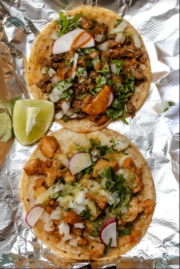 With your choice of protein; topped with onions, tomatoes, jalapeños, and queso.